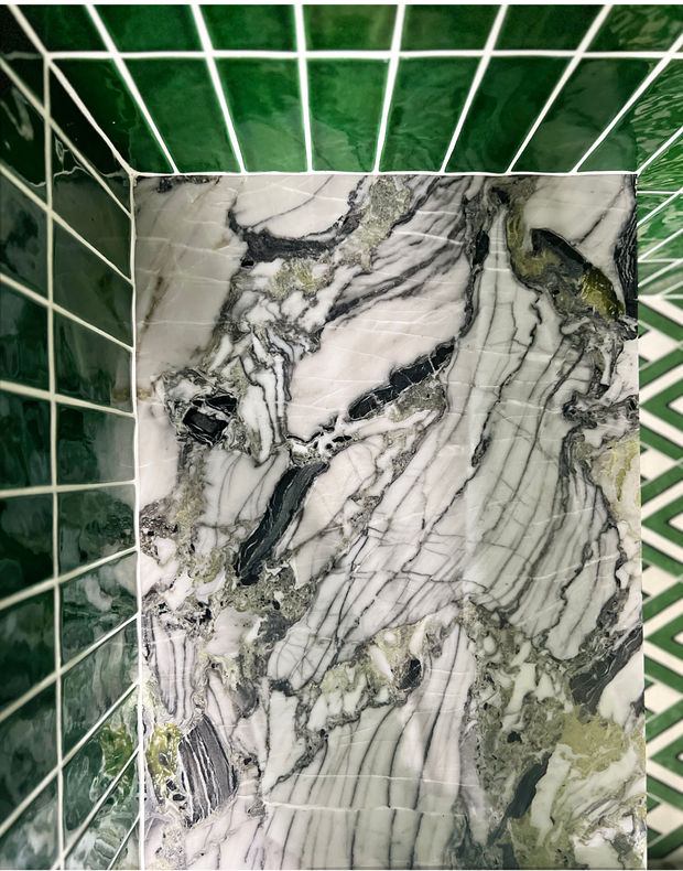 Nestled in the hills of the vibrant, creative energy of Los Feliz, the mid-century home's renovation was inspired by the Client’s More-Is-More mantra. STUDIO.ASHTEN designed a rich, layered space using dimensional materials in moody and verdant tones to create a dramatic artistic expression.