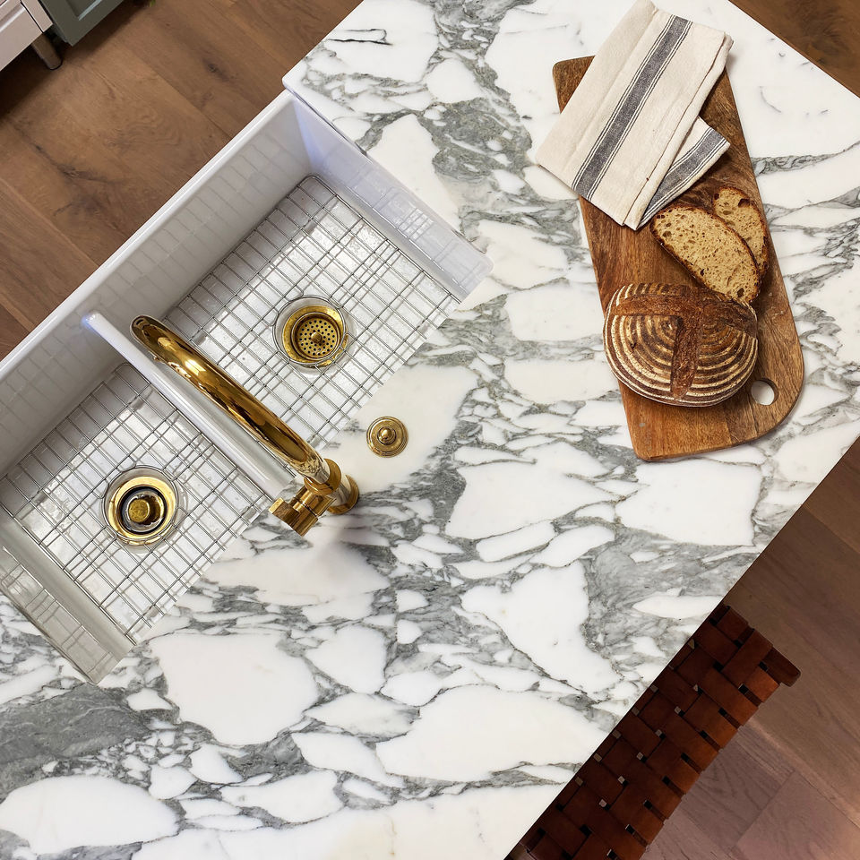 An exercise in methodical design, this Guest House project necessitated all spaces to be as functional as they are beautiful. STUDIO.ASHTEN selected ethereal shades of dusty green and terracotta to create a light palette, visually enlarging the space, which fluidly compliments the grounding, rich materials of dimensional marble countertops and handcrafted metal.
